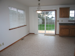 Slider from dining area to a deck, plus another slider from the back bedroom to a second deck.